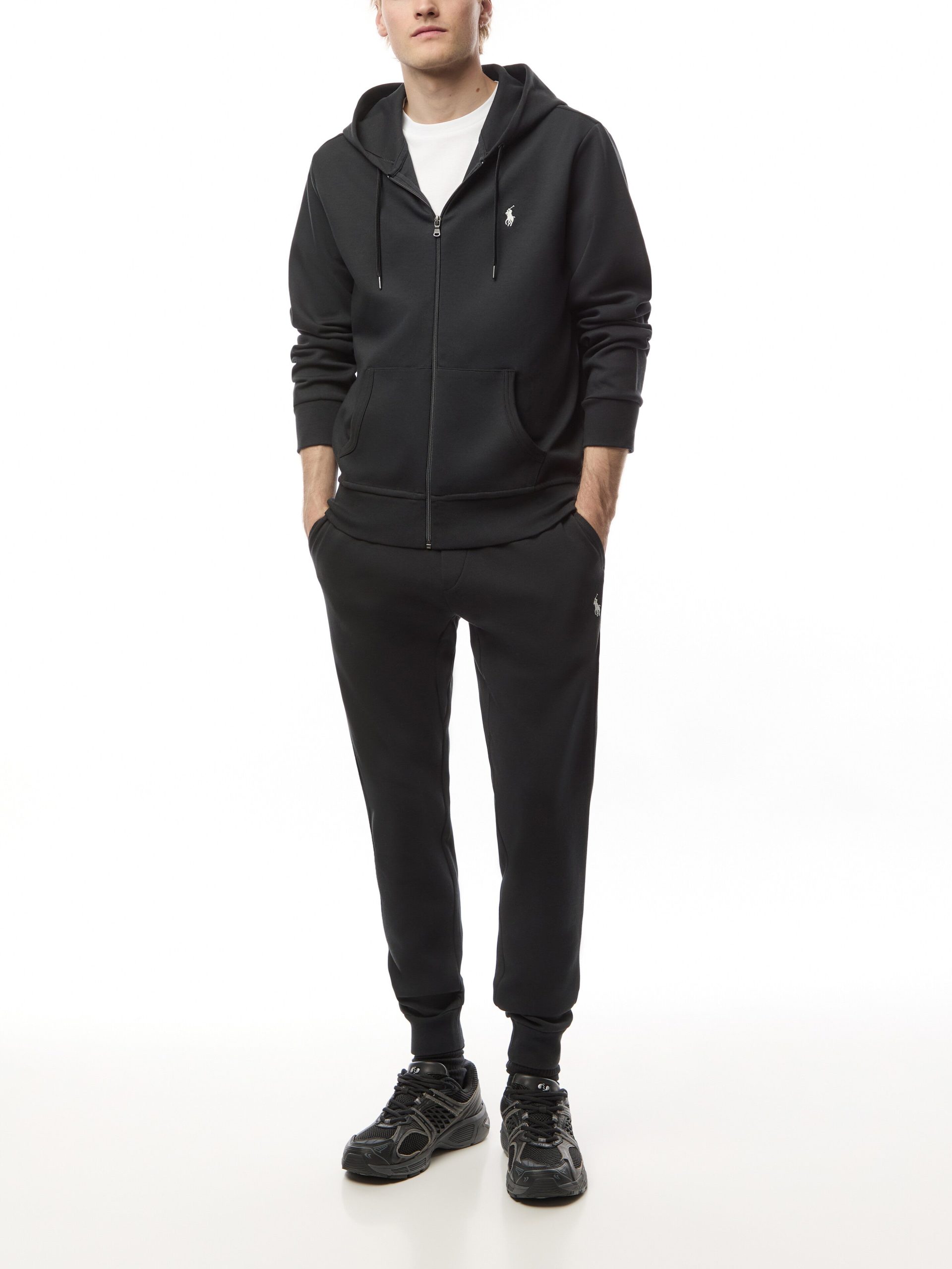 These Double Knit Joggers offer comfort and style with their long. cotton material and trendy tie waist. The logo under the pocket adds a touch of branding to these must-have pants.