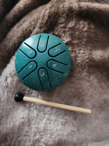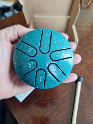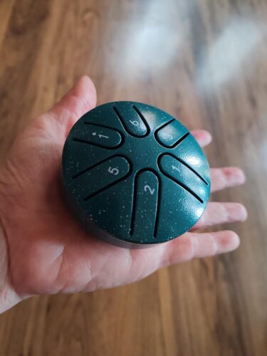 Love this little 6-tone steel tongue drum! It fits in the palm of your hand and the sound is good. It's fun to play and I make up my own little songs....More