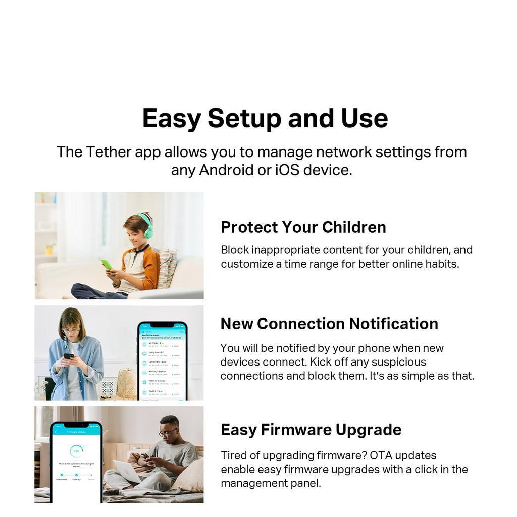 | Wi-Fi 6 Router | TP-AX53 (AX3000), TP-AX23(AX1800), TP-AX12(AX1500) |